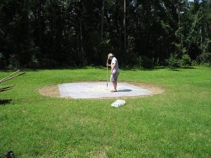 Step 3: Get an increadably small amount of sand and spread it around on top of the plastic to try to level out the ground.