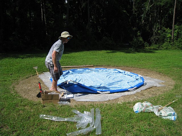 Before you begin, make sure you kill the grass that will be under your pool. You can do this by any means necessary including but not limited to killer bug spray, bleach in a spray bottle or actual grass killer. (I’ll go ahead and save you some time and advise you to just get it over with and buy the damn grass killer…trust me.) Once your grass has turned sufficiently brown, select a date and time to set up your pool. Apparently the best time to do this is in the heat of the day, when it’s about 110 degrees outside.