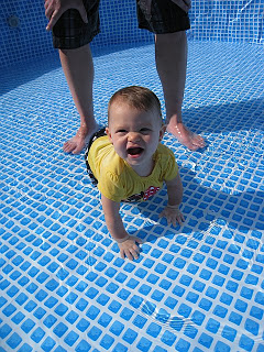 Step 8: Fill with water. Note: at this point feel free to let your baby splash around in the actively filling pool with her clothes on. Why not, right?